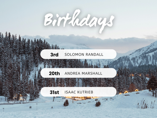 I hope you’re doing well and that you had a great Christmas and may you have a fun and safe New Year with your family and friends. It was nice to take a break and enjoy the season, but I have to say I really missed youth group and seeing everyone each week! Now that the new year is here, I’m excited to see what God has planned for us. Thank you for being such a part of our youth ministry. It is a blessing to walk with you and your families as we learn more about God and follow Jesus together.